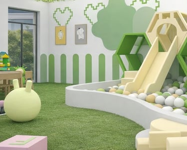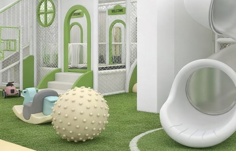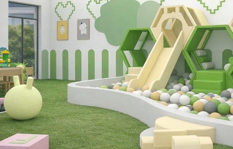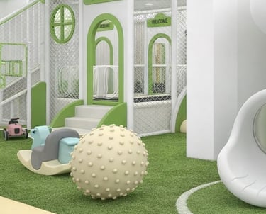 Barvit prostor za plezanje, skakanje, raziskovanje in ustvarjanje – vse v varnem in udobnem okolju.