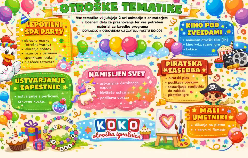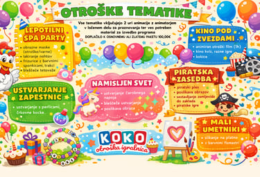 🎉 Otroška tematika z animatorjem (2 uri) – 100,00 €